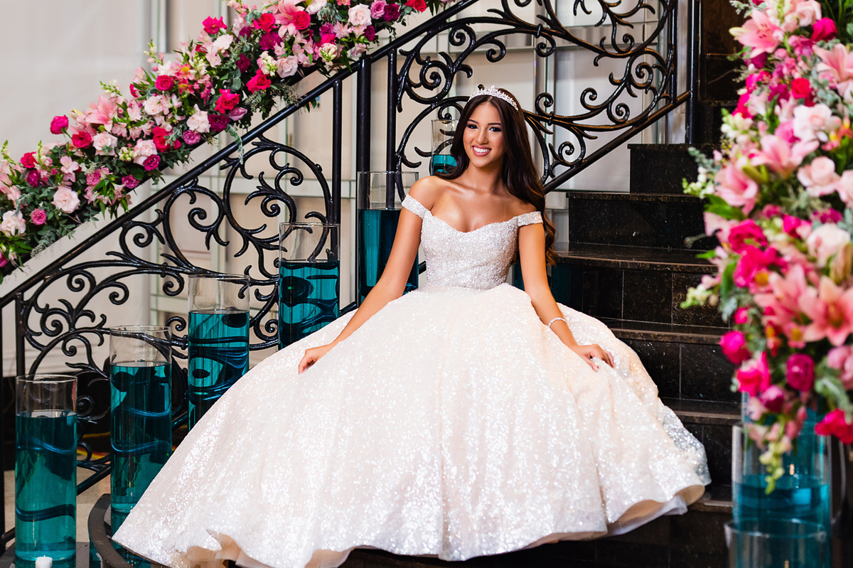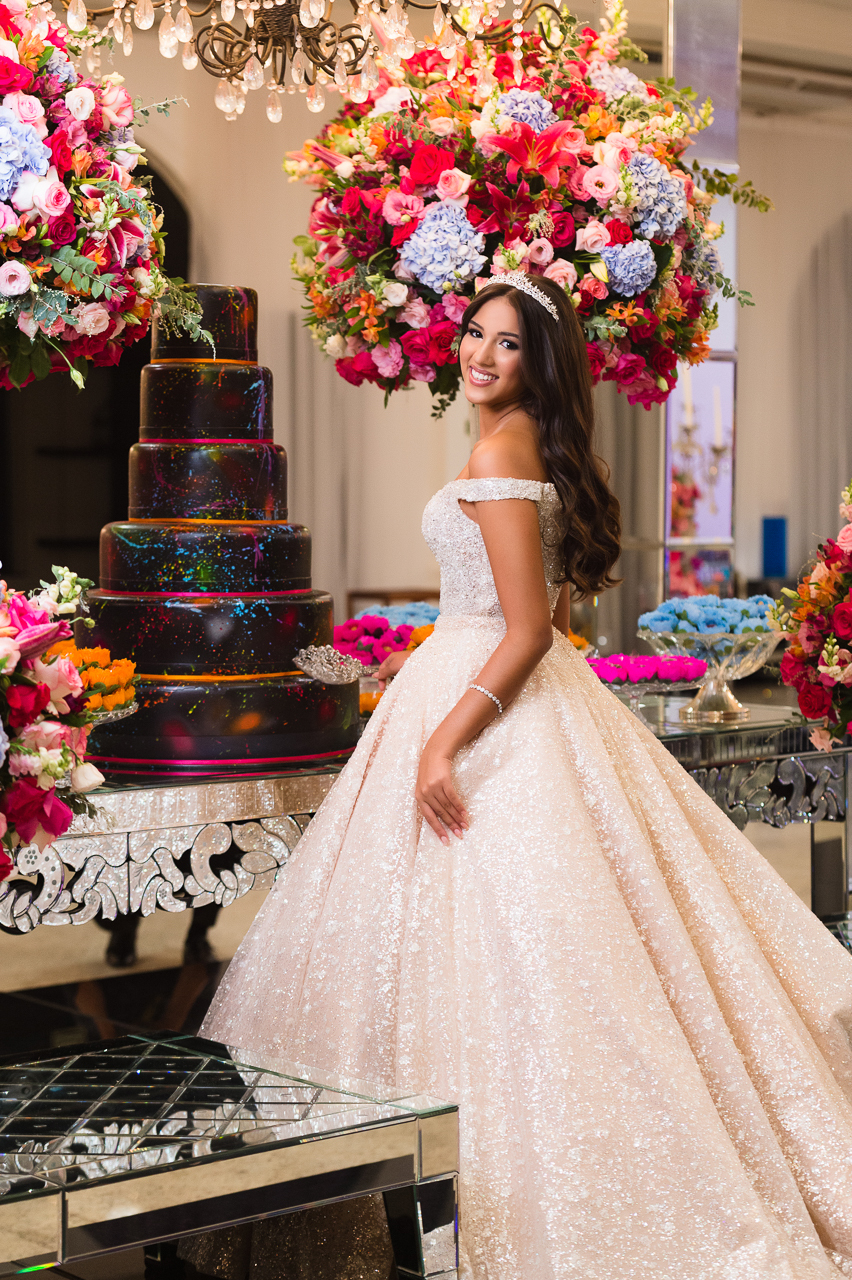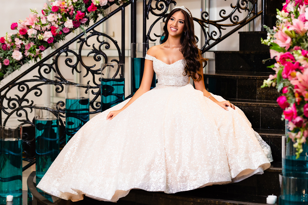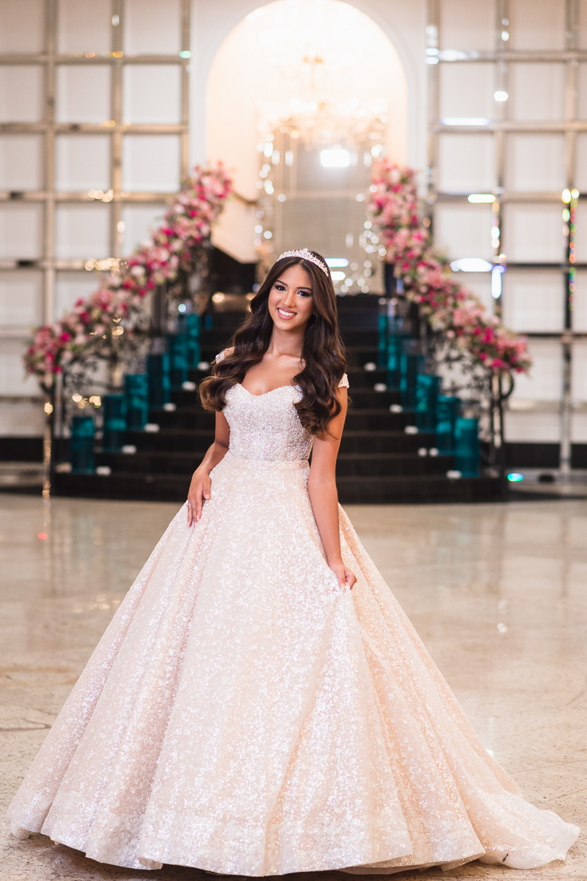 Começamos fotografando todos os preparativos da Vitoria, que no making of estava radiante e emocionada com as lindas surpresas que foram planejadas especialmente para a tão sonhada festa de quinze anos. Seguimos fotografando uma linda sessão de fotos do vestido da Valsa no salão e no jardim antes da chegada dos convidados.