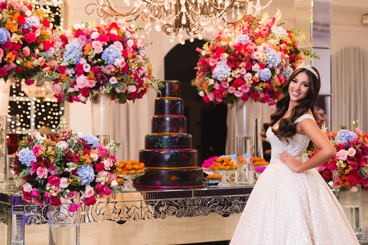 A festa? Nem precisamos falar que estava encantadora! A Helen do Dúnia deixou o salão ainda mais belo pra essa grande noite, onde a Vitoria recebeu todos os seus convidados com abraços e sorrisos no hall de entrada junto com o casal espelhado da Glow Produções.
