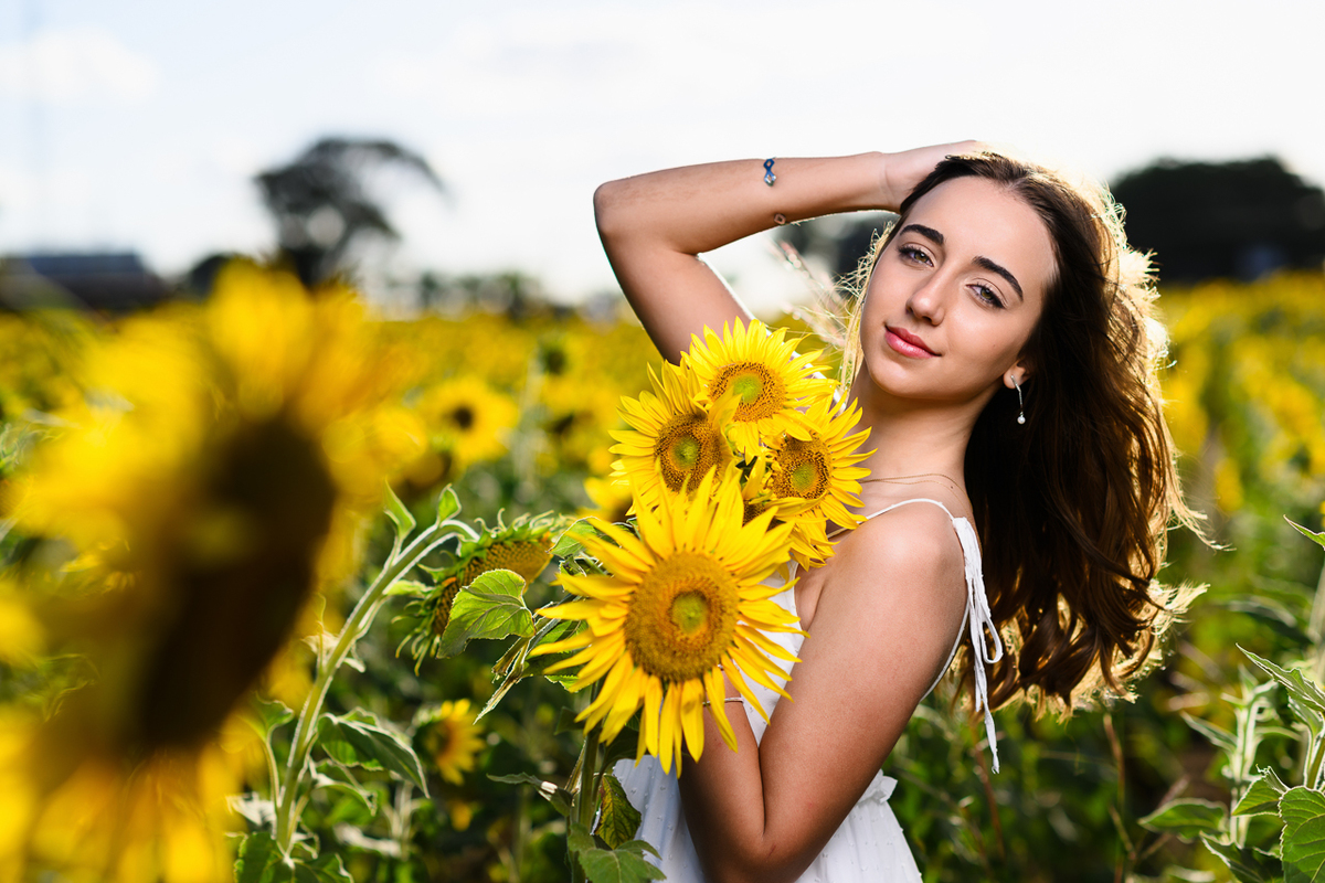 Fotos de quinze anos nos campos de girassóis, TEMOS SIM! Fizemos uma linda viagem para os campos de girassóis para produzir esse ensaio maravilhoso! Levamos vários acessórios para deixar o ensaio ainda mais divertido. O mais importante é que conseguimos realizar o sonho da Juju que é apaixonada por esse etilo de ensaio com fotos românticas com um pôr do sol encantador.