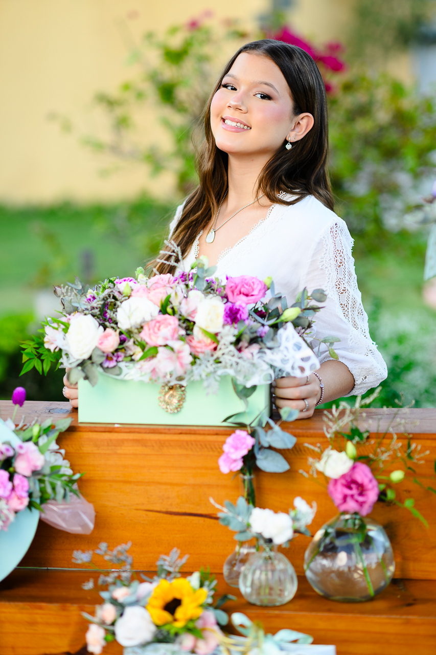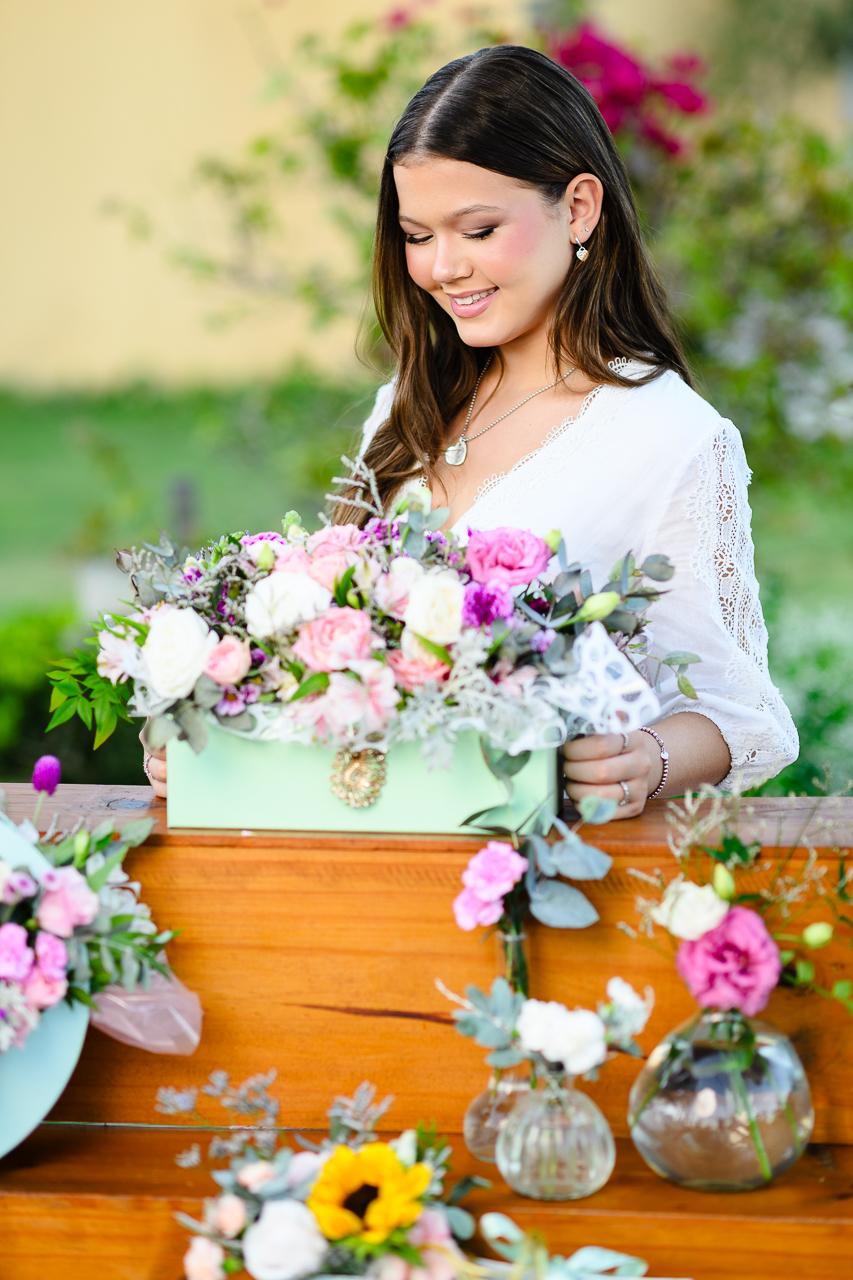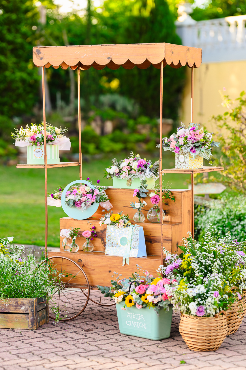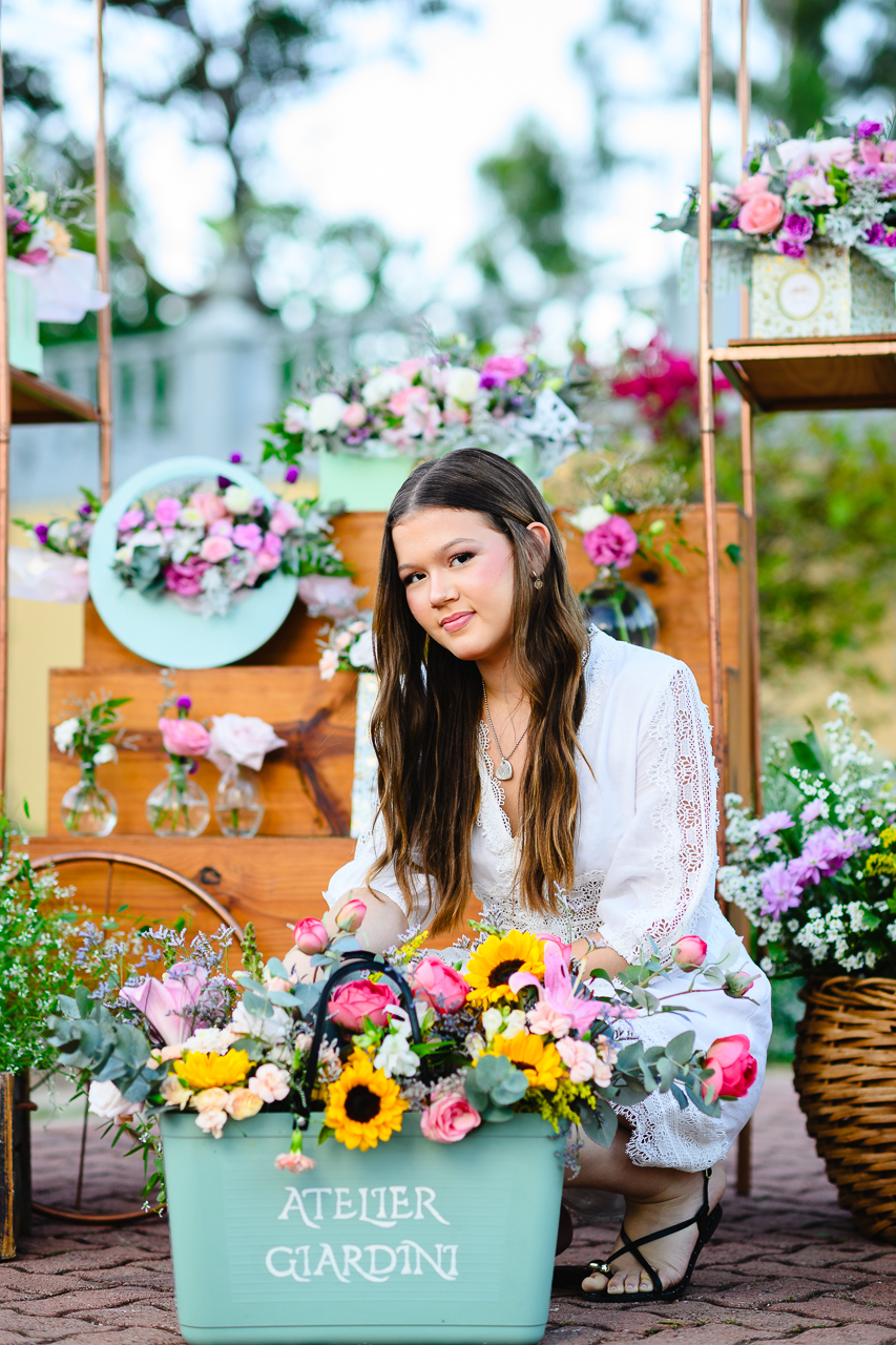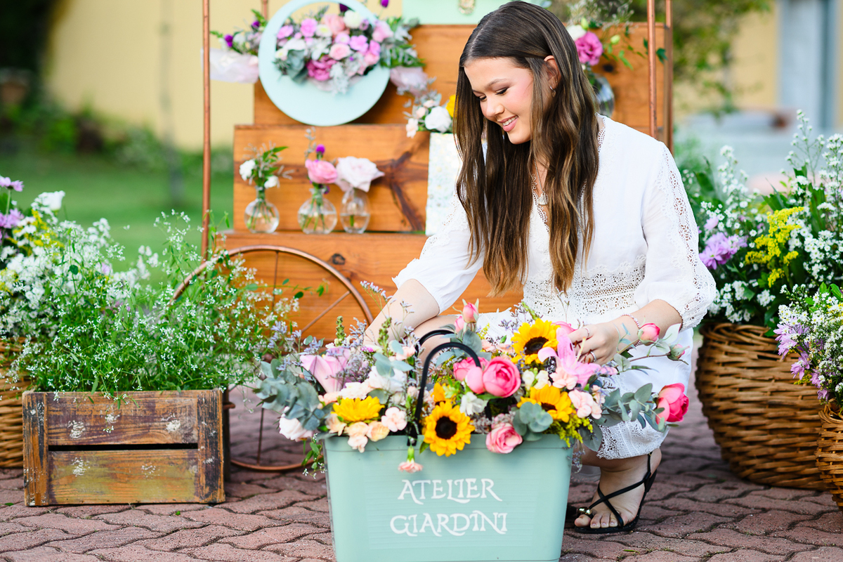 Iniciamos o ensaio com a linda produção da lojinha de flores que o Ateliê do Villa Giardini preparou especialmente para ela. O Ateliê do Villa Giardini montou uma lojinha de flores na parte externa com uma linda variedade de flores naturais.