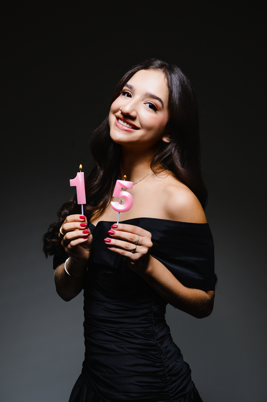 Faltam poucos dias para a tão sonhada festa de 15 Anos da Manuela e hoje é dia de compartilhar o lindo ensaio fotográfico que realizamos no estúdio para celebrar o aniversário de quinze anos da Manu! Começamos o ensaio no estúdio com os looks mais causuais que a Manu mais gosta e se identifica. Utilizamos um esquema de luz bem suave para valorizar toda a beleza da Manu e seus acessórios.