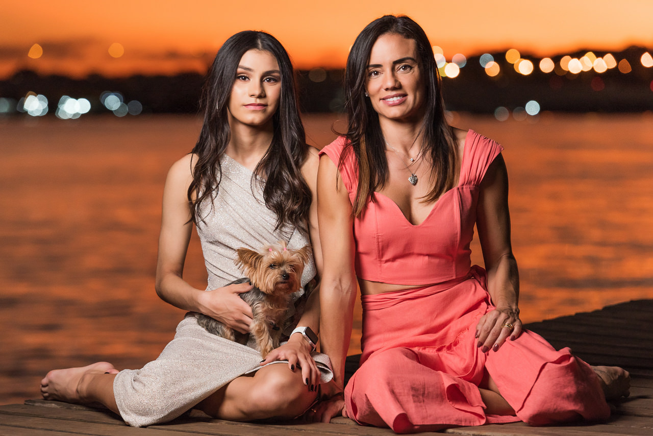 Mas as expectativas estavam para a próxima locação, com direito a fotos do super esportivo que o pai trouxe para o ensaio! Finalizamos o ensaio sobre o deck de madeira no setor de clubes com vista para o lago abençoado com um maravilhoso pôr do sol.